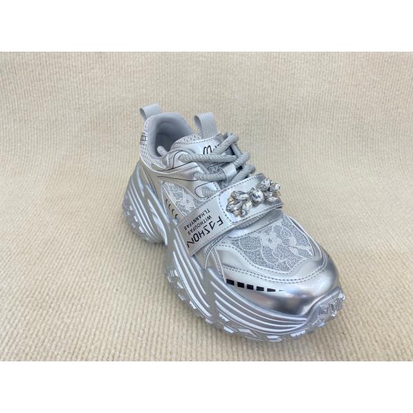 Silver White Fashion Sneakers With Paillette Cristal Breathable Mesh And Low Cut Images |